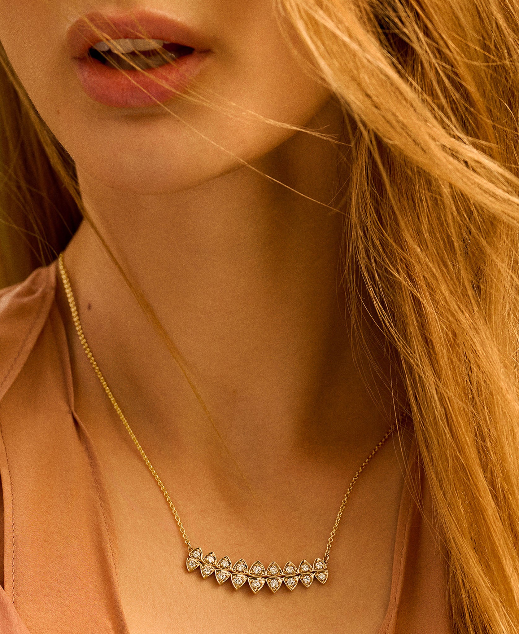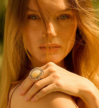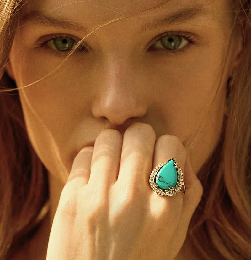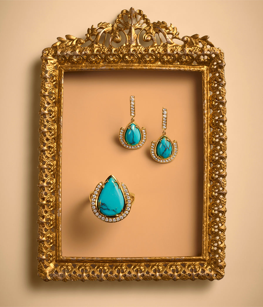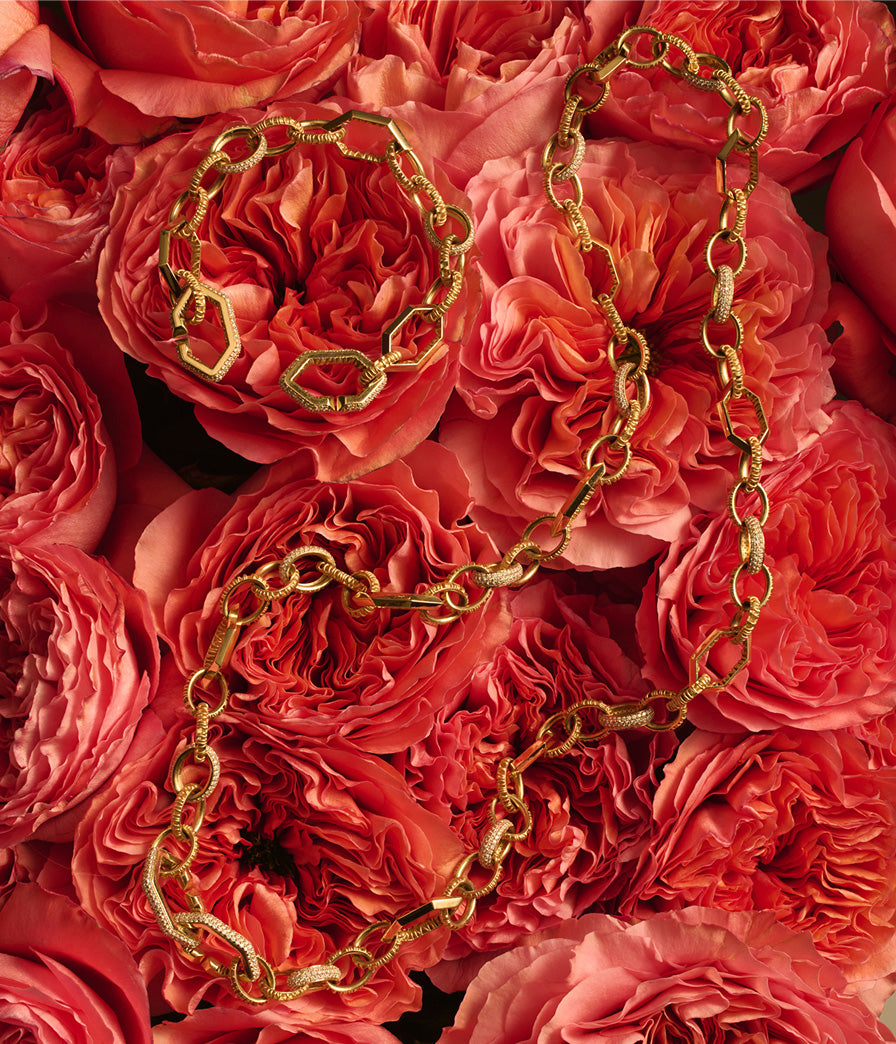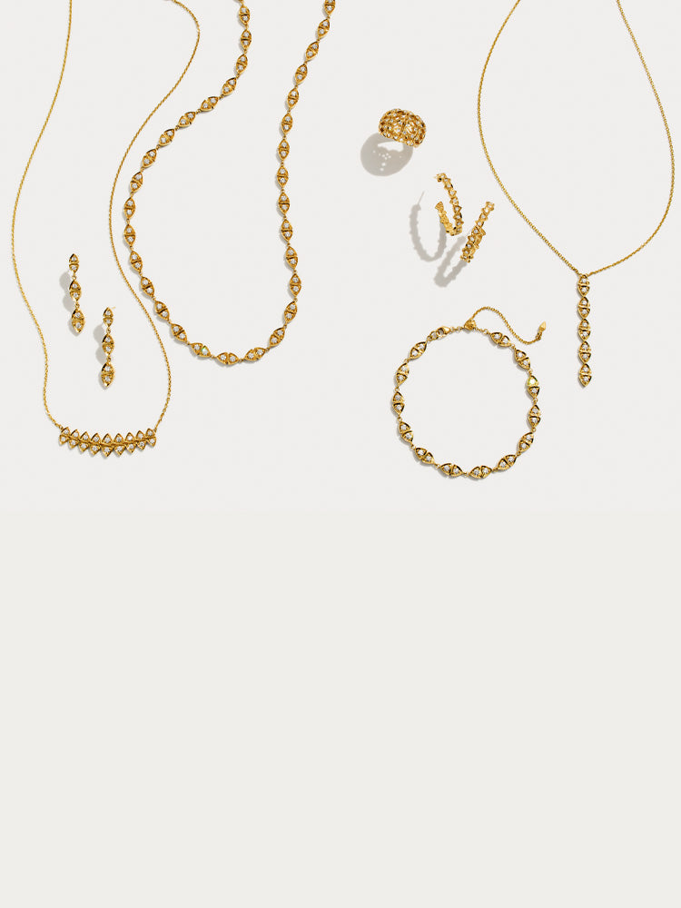 The Commodore Perry Estate, tucked into Austin’s historic Hyde Park neighborhood, is the backdrop to our latest campaign. Here, storybook details and floral inlaid limestone accent formal gardens interwoven with wild oak trees. It’s a postcard from the Roaring Twenties, when flappers mingled with ranchers at lavish parties on the edge of the wild. A modern sensibility now accents this patina of the past, where our shimmering opals and alluring diamonds tell a tale all their own.