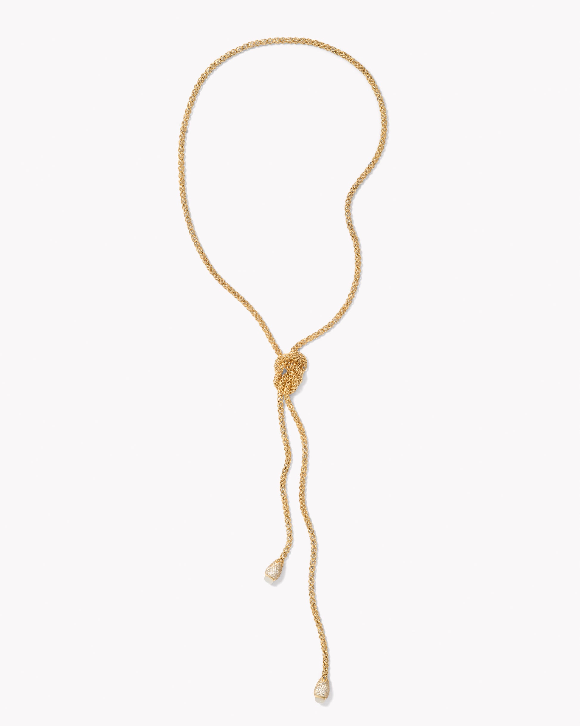 Inspired by ropes and chains you'd find on a Texas seaside doc, the Cabo Chain Lariat Necklace is a gold-filled statement. Enjoy your choice of drops from the dazzling pave diamonds or pops of color from the Peruvian Opal beads and create your own look with the knotted chain.