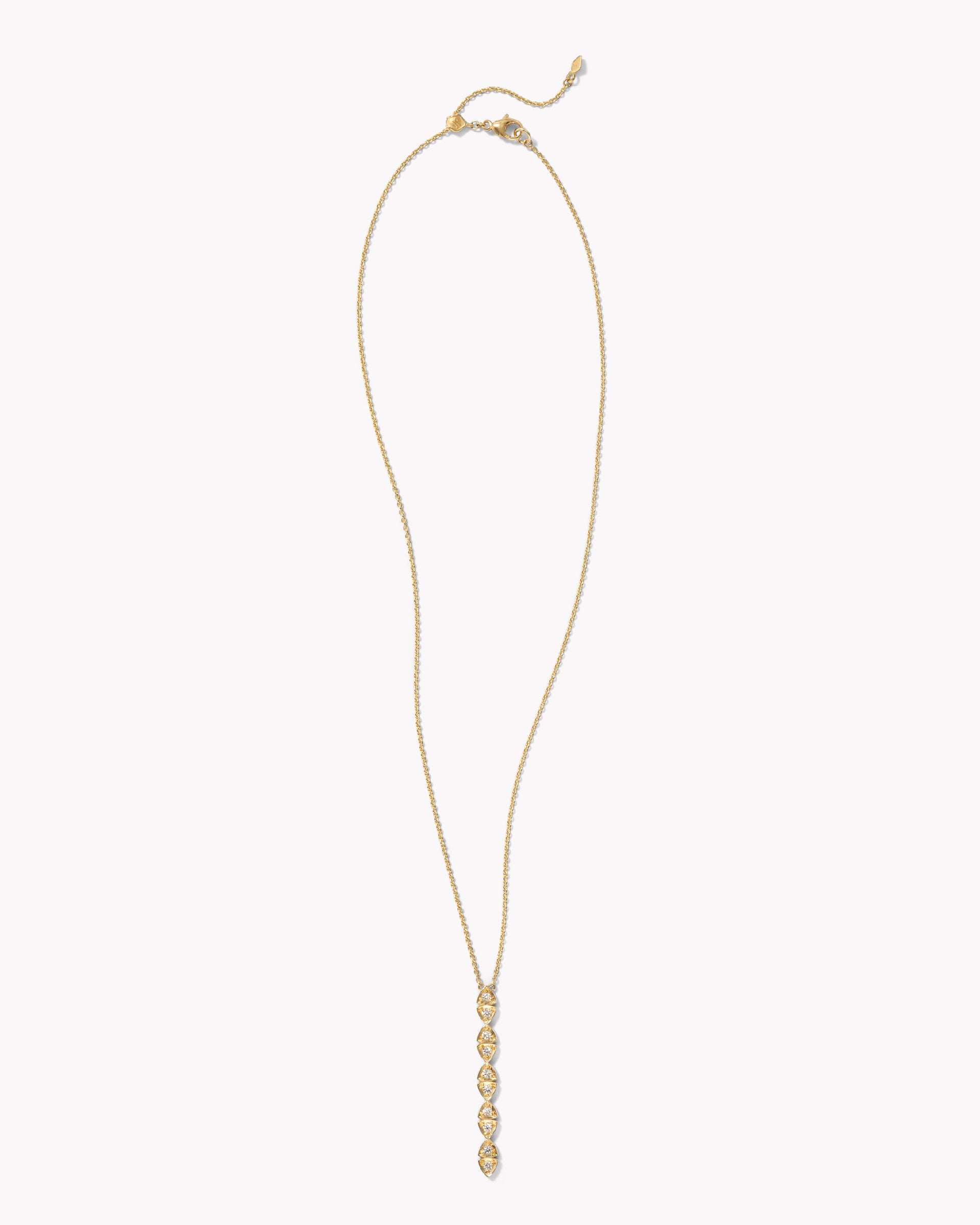 Gracefully suspended from a delicate gold chain, the Emory Diamond Drop Necklace has dazzling diamonds shimmering in perfect cadence. Its elegant, vertical design evokes the gentle fall of dewdrops at dawn.
