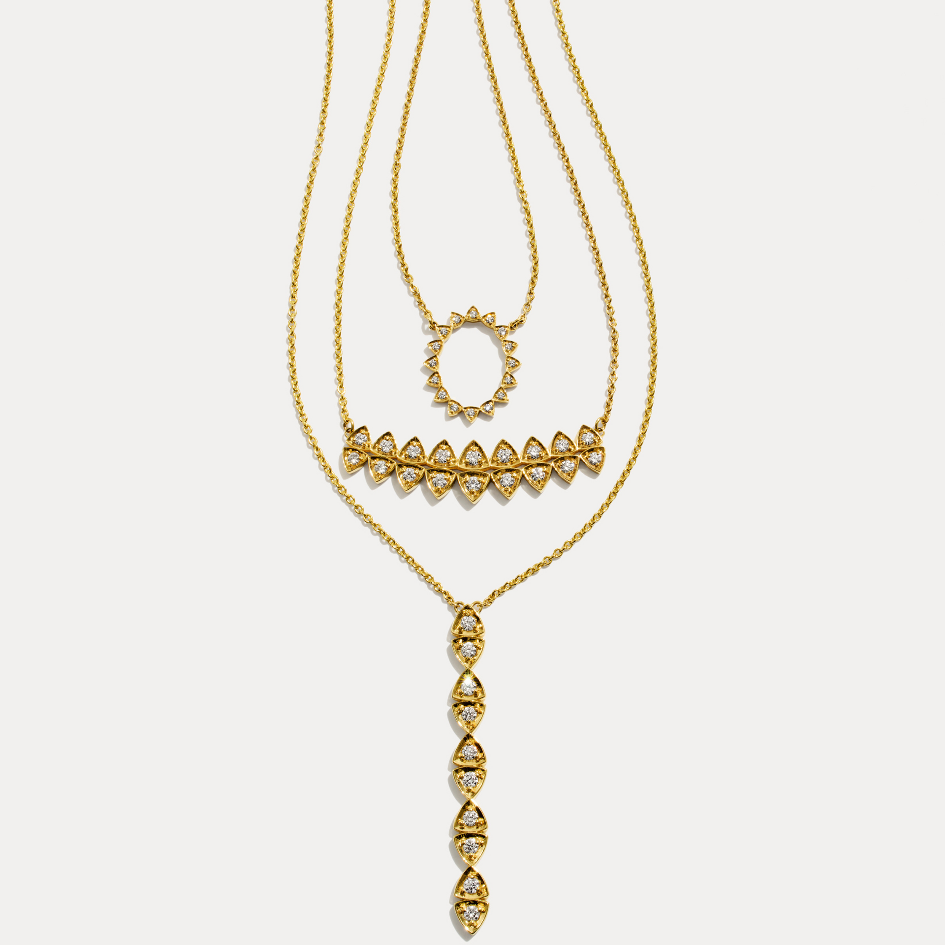 An ode to the stars. Cascading like a whisper of stardust, the Emory Diamond Starburst Necklace hangs perfectly from a delicate gold chain.