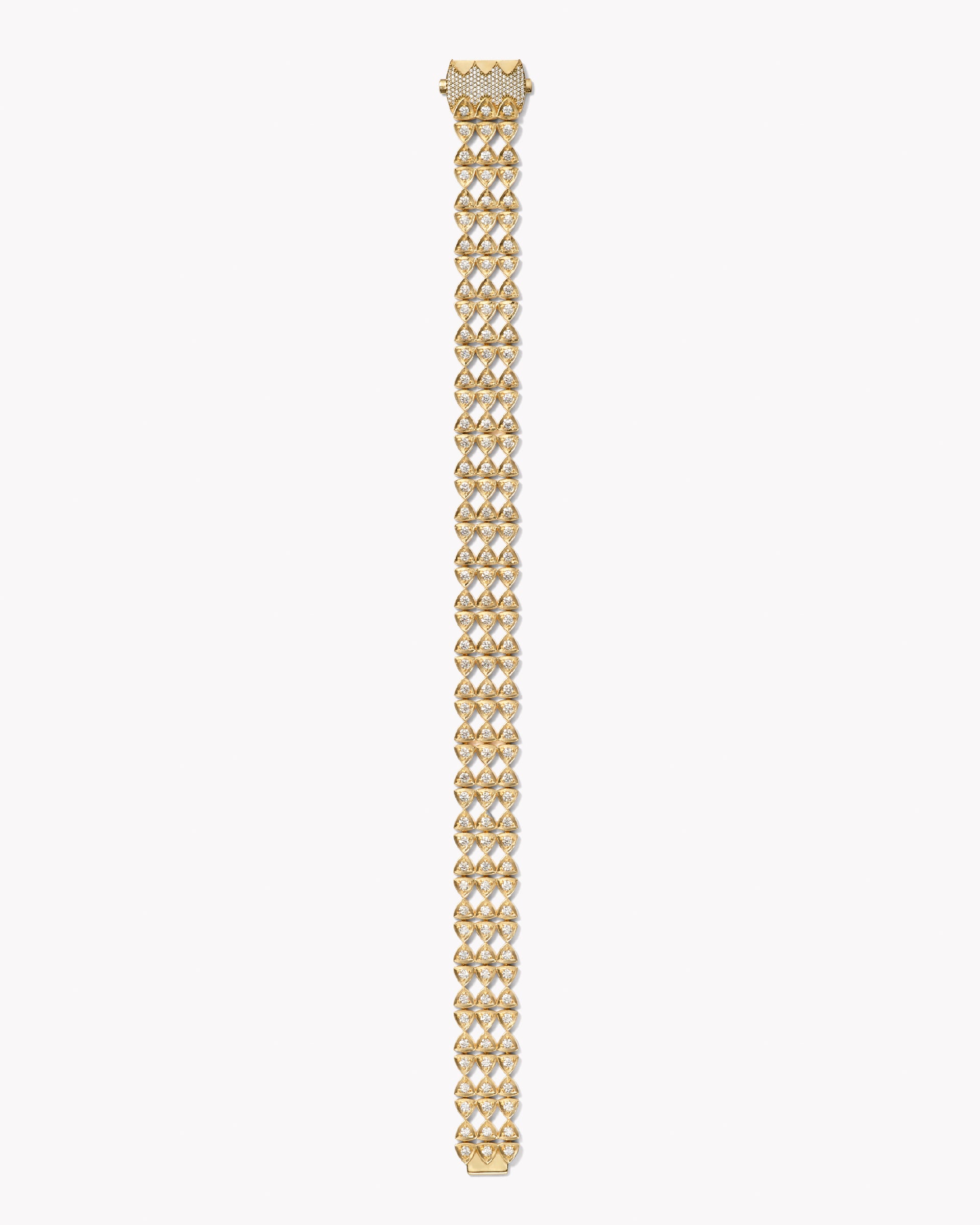 Our Emory Diamond Statement Choker exudes sensuality with its trillion lattice of radiant diamond links and bold 18k gold shimmer. Connected by a paved diamond clasp.