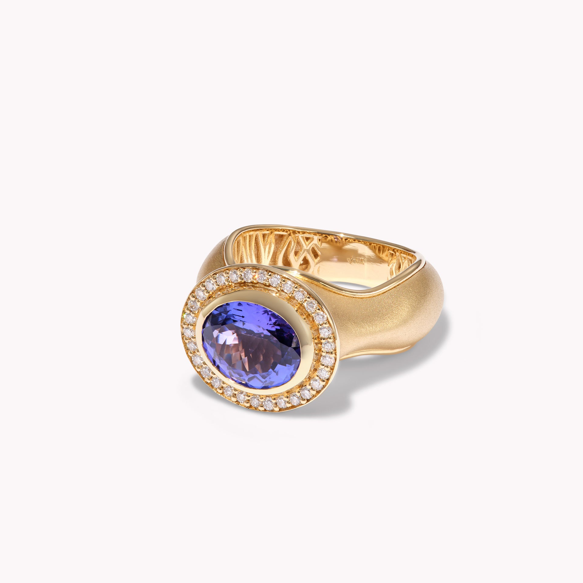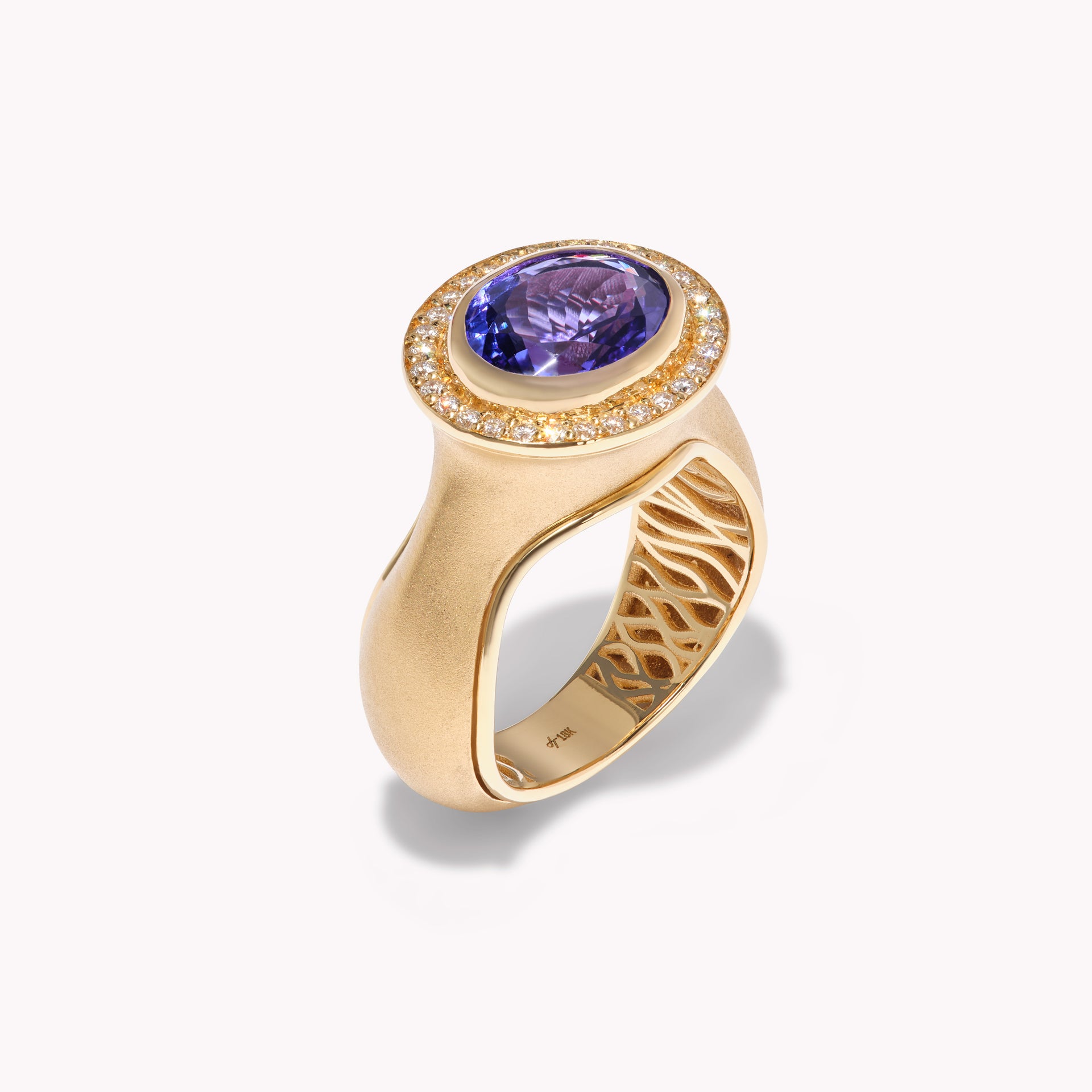 Our Rose Ring reimagined. The Haven Signet Ring is eye catching and regal. Your choice of faceted stone from Rubellite to striking Tanzanite take center stage in this stunning design. The added halo of brilliant diamonds take this ring to a new level of glamourous.