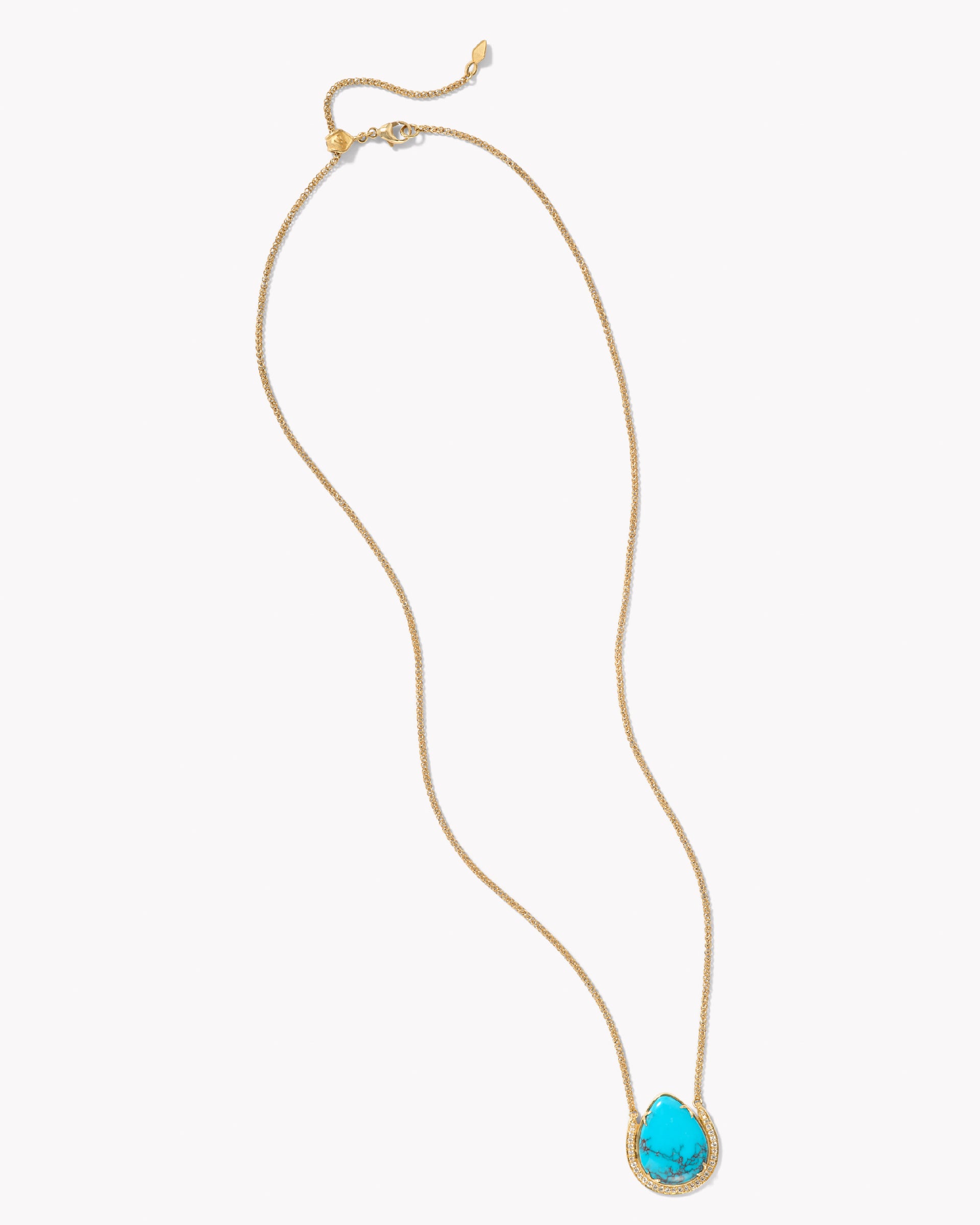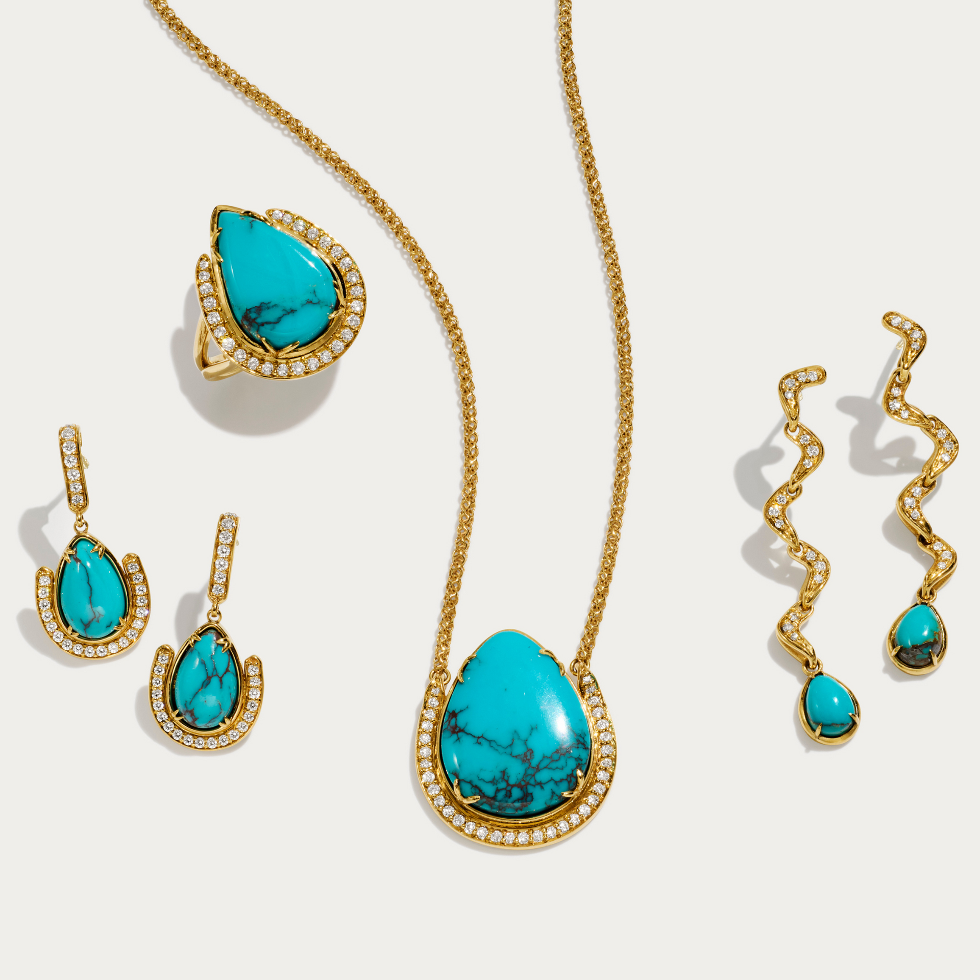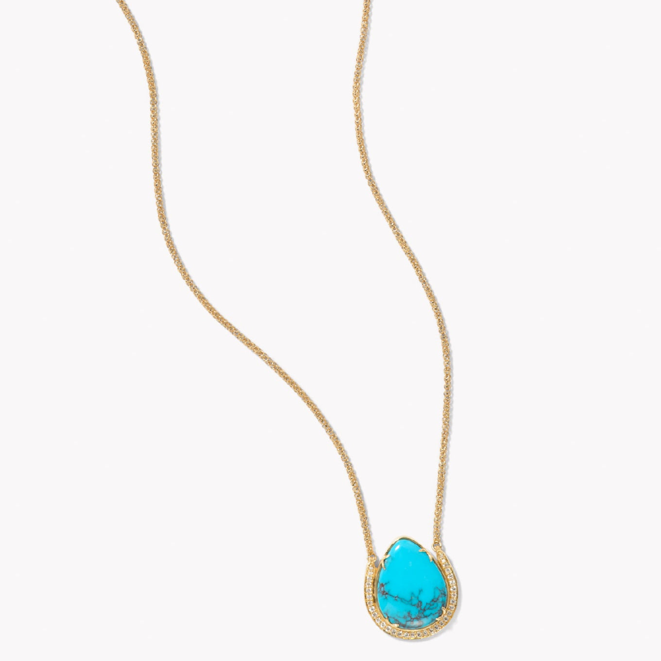 A delicate version of our Victoria Necklace, this petite version is perfect for everyday wear. With a teardrop stone of Turquoise hugged by a diamond horseshoe, this necklace is simply stunning.