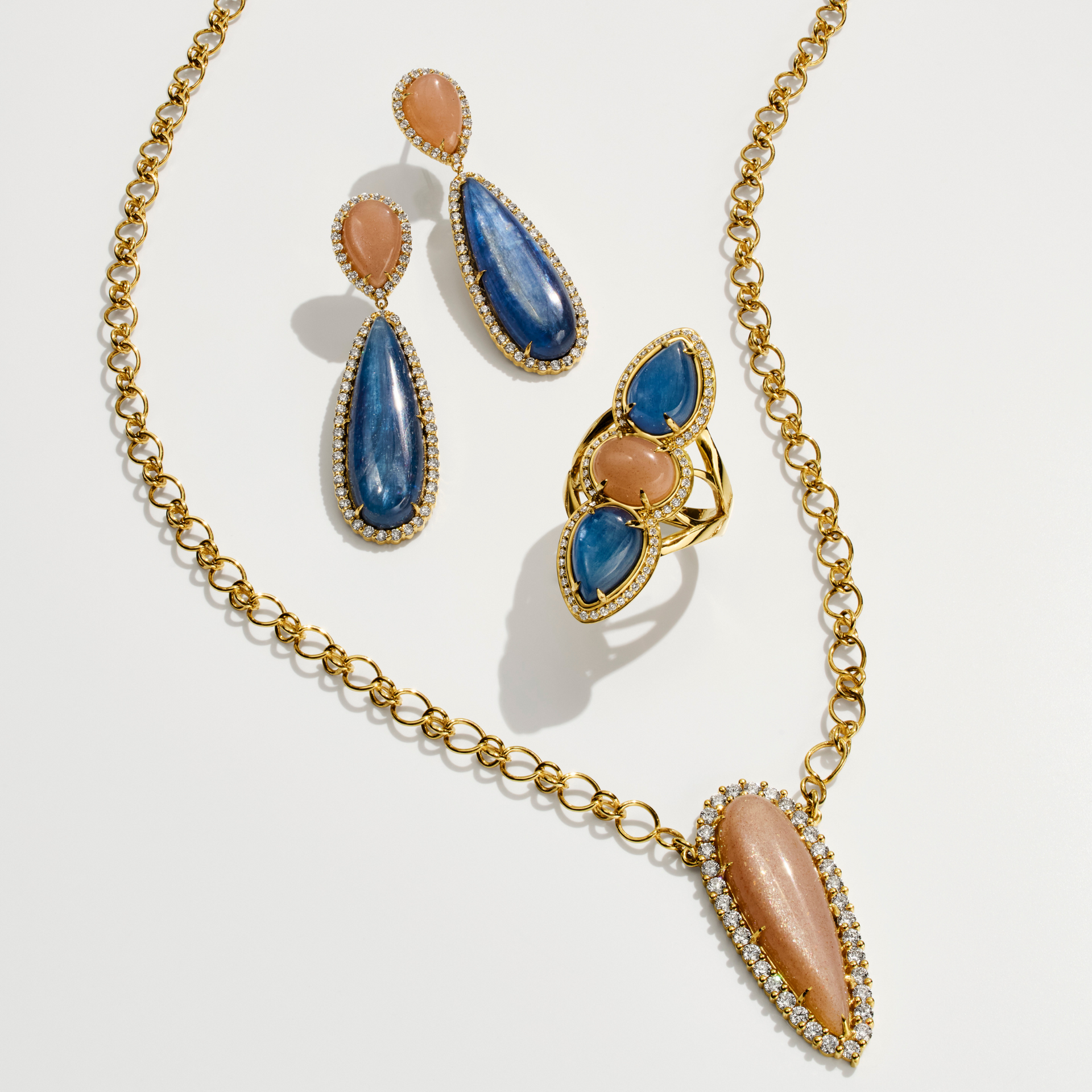 *All stones are unique and reflect beautiful variations. Gemstone and diamond carat weights are approximate.