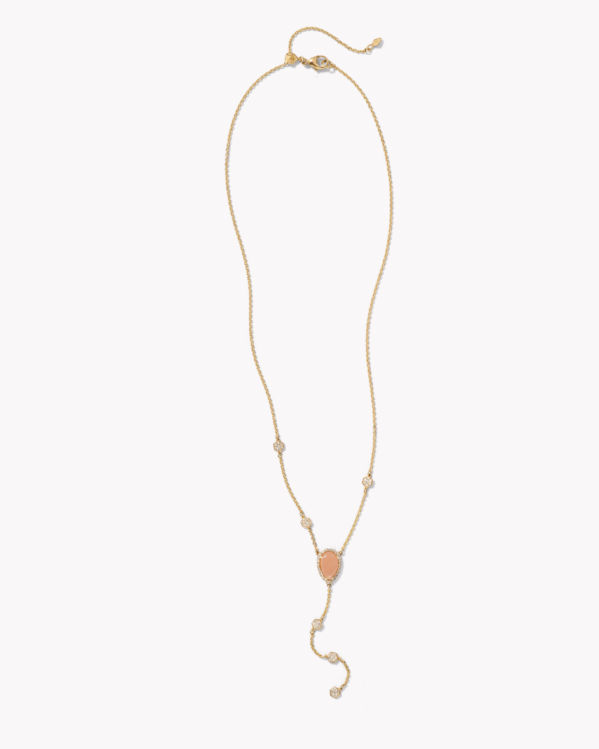 A modern and artful twist on a classic silhouette. Our Sparrow Lariat Necklace adds a hint of color nestled between the opening of a button down blouse while the diamond satellites on the chain offer a touch of sparkle.